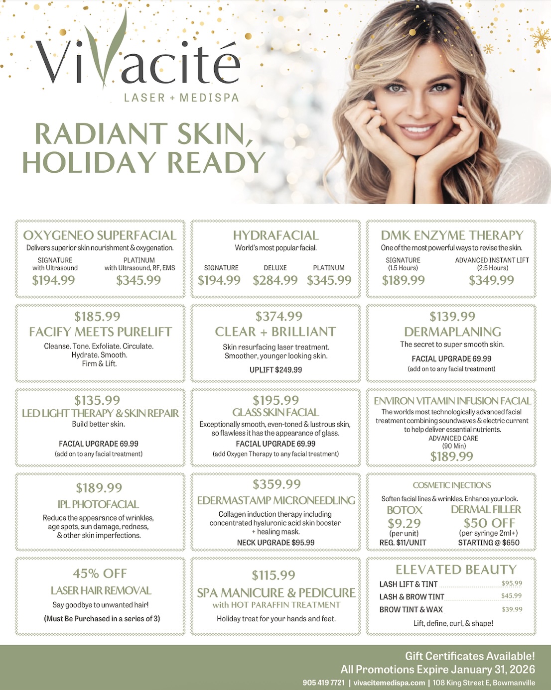 Vivacite Medispa is introducing the finest, most up-to-date technology to Bowmanville. Enjoy the latest, most advanced treatments in a clean, comfortable, safe environment, where you will feel less like a client and more like family.